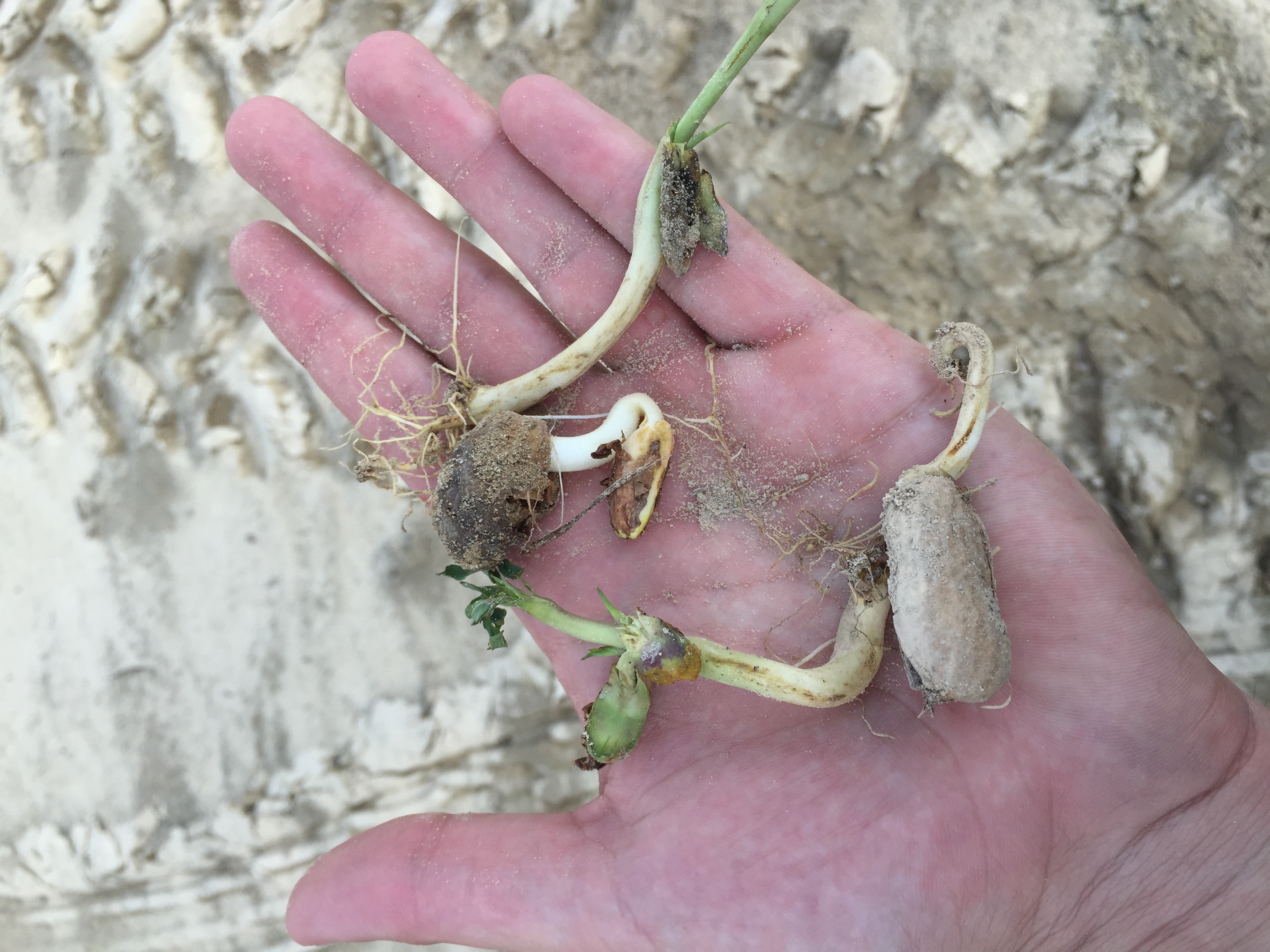 In Virginia peanut digging started this year two weeks earlier than in most years, on Sep 15 in most counties. This is because of the combination of genetics, early maturing cultivars, and weather. One may say this summer was dry. Indeed, it was and some fields were more affected by drought than others. But it was a certain type of drought: cool and wet alternating with warm and dry long periods of time. For example, May was warm and dry, and suitable for early flowering; June and half of July were cooler and moist; perfect for peg and pod growth. And that was it: one huge, uniform crop set early on in the season and not two crops like we usually see in dry years. Altogether, by mid Sep the 2600 accumulated heat units were sufficient for Bailey and Sugg, the mostly grown cultivars in Virginia this year, to mature.