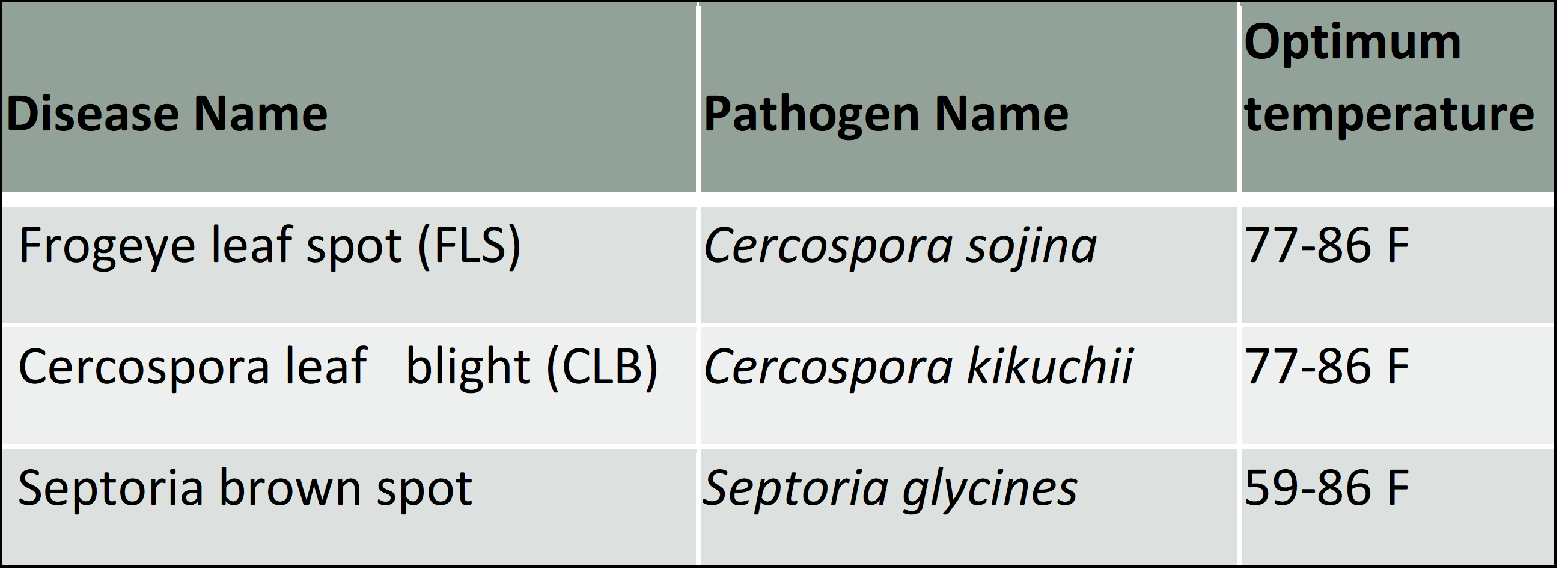 We think that during the period of 1 week before and 1 week after mid-R3, yield-robbing disease levels may develop if we have 3 favorable days with 10 or more hours of relative humidity at or above 95% and temperatures in the optimum range (77 to 86 F). When these conditions are met, we would suggest a fungicide application.