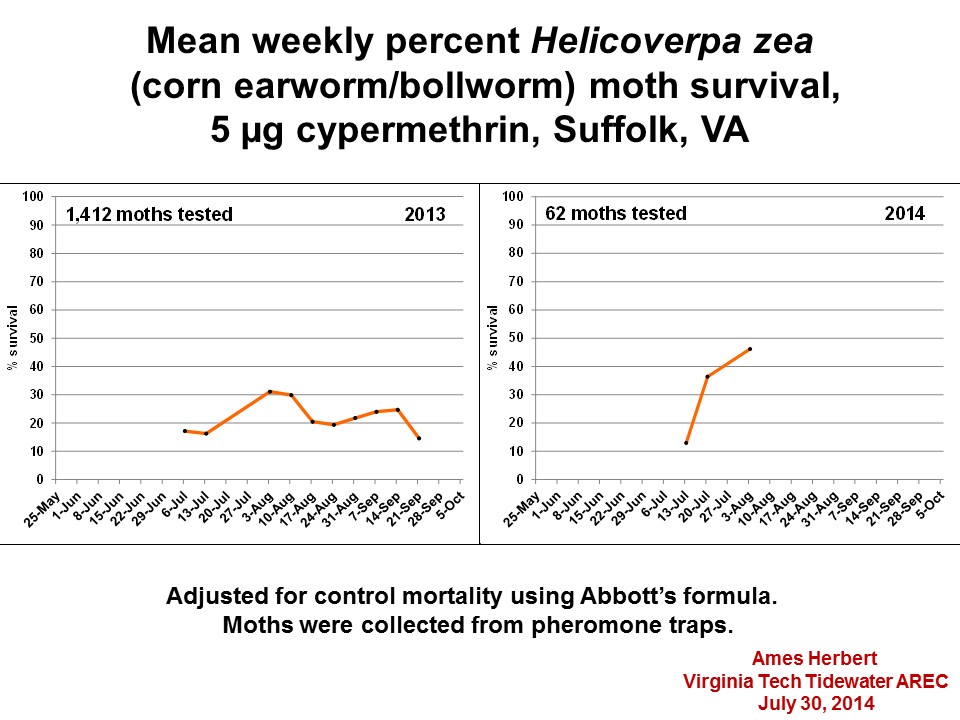Corn earworm update—slow to develop but some surviving the pyrethroid vial test