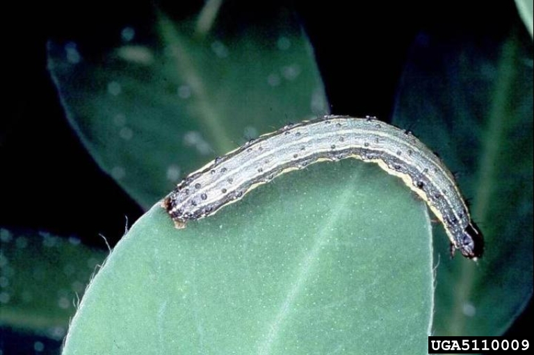 For the past several years we have been using pheromone traps to monitor fall armyworm moth flights at the Tidewater Center. The numbers we have been catching these past few days are much higher than what we have normally seen. Fall armyworm has two strains. They are identical in appearance but one prefers to feed on grasses (the grass strain) and the other prefers to feed on legumes, cotton and other hosts. We cannot tell which strain we have by looking at the moths, but we do know that fall armyworms can infest peanuts, cotton, sorghum, turfgrass and many other crops. We have not found any fall armyworms in the peanut fields in the vicinity of the adult traps, but if they are going to occur, we would expect to see them next week. Moths have to mate, lay eggs on the peanut leaves, and worms hatch from the eggs—typically a 5 to 7 day cycle. In peanuts there would have to be a lot of worms to warrant a treatment. This late in the season, and with the extensive plant canopies that most peanut fields have, it would take at least 6 worms per row foot to trigger a spray. It has been many years since we encountered that many worms in a peanut field—but, we strongly suggest that you spot check fields for these critters.