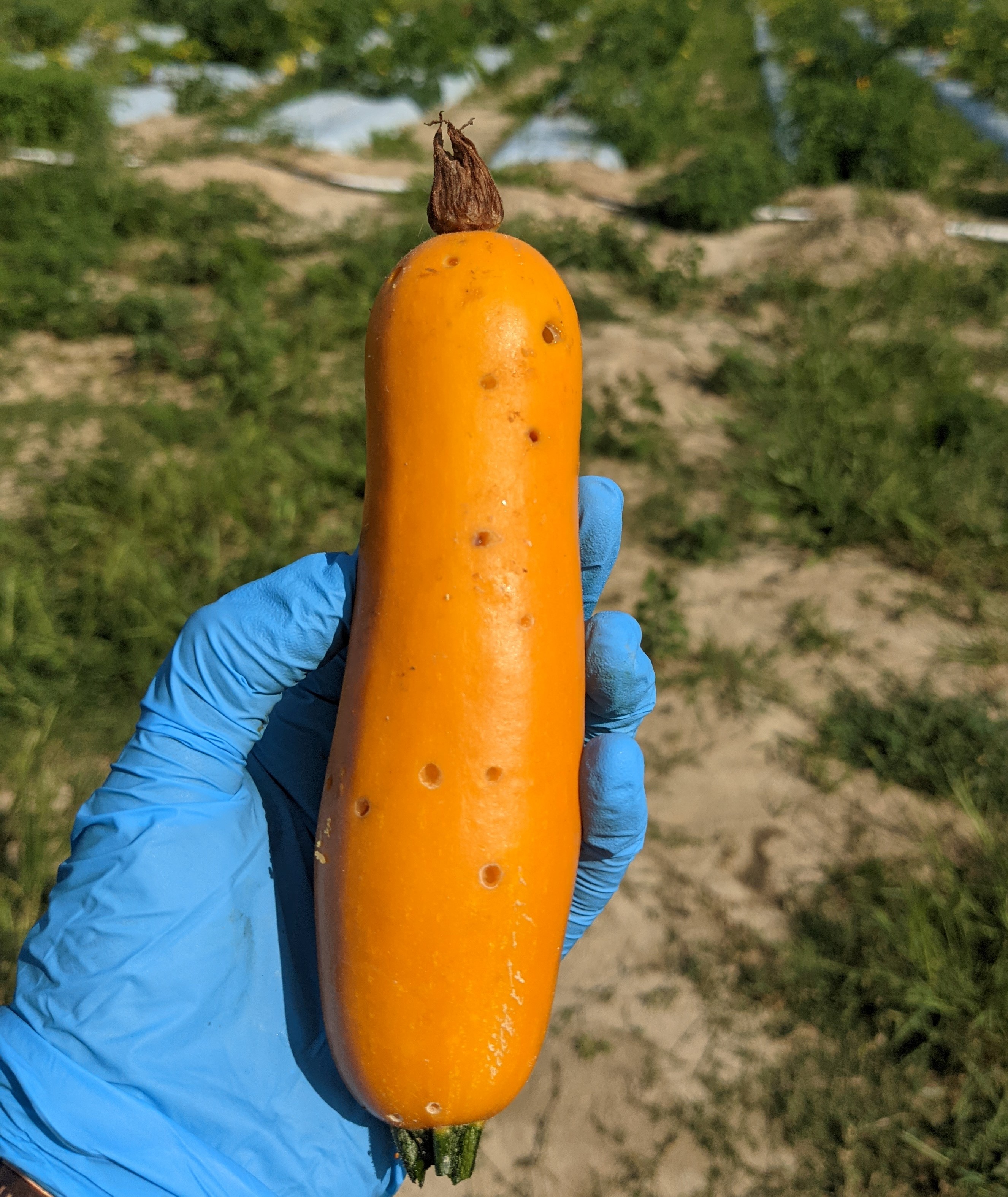 Last year, we at Virginia Tech started a pickleworm and melonworm monitoring program consisting of information exchange between cucurbit growers and extension agents across the state that looked for these pests’ damage to cucurbit blossoms or fruits. In 2021, we recorded up to 80% of squash fruits or flower buds infested with either pickleworms or melonworms. This year we continued with the monitoring efforts by monitoring closely summer squash fields in the Eastern Shore, Blacksburg, and Chesapeake area and no pickleworms nor melonworms have been detected.