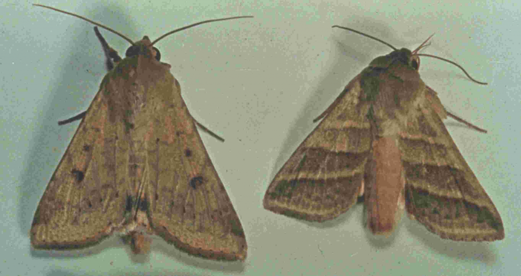 This summer and fall, we are tracking moth flight numbers around Virginia using pheromone traps for three important pests, fall armyworm (FAW), which can attack most grasses, corn, sorghum, small grains, and even alfalfa; pickleworm, which is a late season pest of squash, pumpkins, and cucumbers, and corn earworm (CEW), which attacks over 300 host plants including many of the major crops in Virginia. FAW and pickleworm do not overwinter in Virginia and typically are carried northward in late summer on storm fronts coming from the south.
