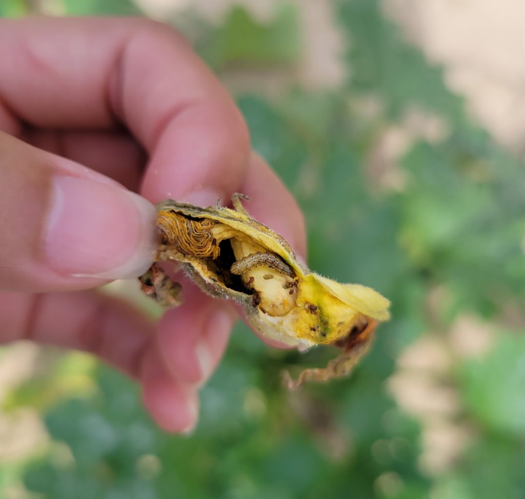 Increased infestations with pickleworm and melonworms continue to be observed this week in the Eastern Shore of Virginia. Yesterday, Sep. 2nd 2021, these pests were found feeding on yellow summer squash, green zucchini, and dumpling winter squash crops. All plants sampled in Cape Charles (n= 30) and Machipongo (n= 20) showed at least one fruit and one flower bud with either pickleworms or melonworms, many times with both. If you have any squash crops at the moment, please continue to monitor your plants.