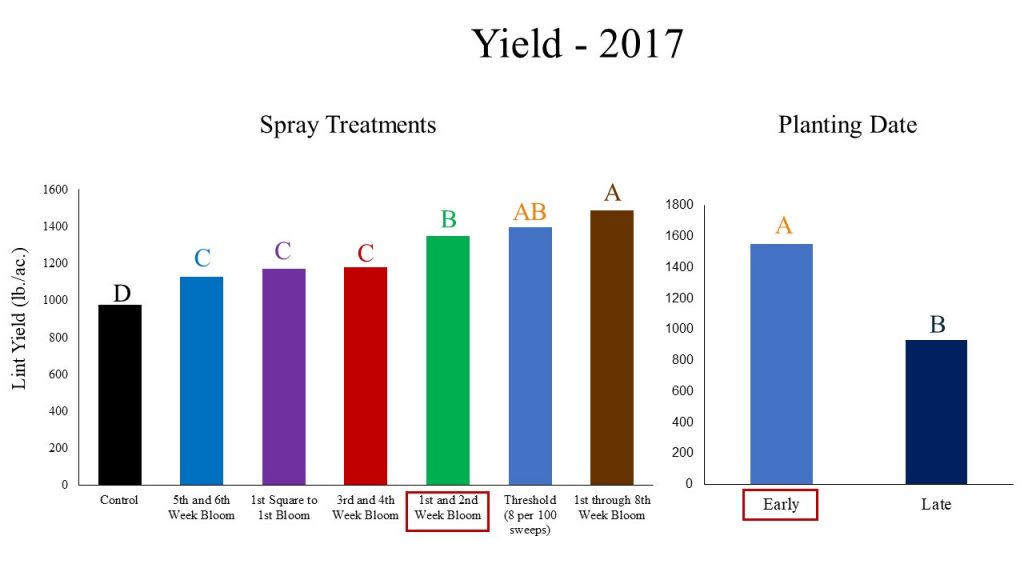 This season, there has been very poor performance of pyrethroids against plant bugs. Bifenthrin (Brigade and generics) performs better than other active ingredients including lambda-cyhalothrin (Karate, Besiege, Warrior II, Lambda-Cy) and beta-cyfluthrin (Baythroid). Acephate (Orthene 97) and sulfoxaflor (Transform) are better products. Diamond, an insect growth regulator that targets nymphs, should be tank mixed with either acephate at 8 oz. or bifenthrin at 6.4 oz. Currently, I do not recommend Diamond with other products without consulting your Amana representative. Diamond is added to prevent infestation and kill nymphs. It may not have quick knock-down. We have tested Diamond’s residual until two weeks post spray. Acephate alone works well at 8 oz. and is not rain fast. I have concerns with acephate and aphid populations that I will discuss this in another post. Both Bidrin and acephate are effective against plant bugs and stink bugs. For bollworms, I recommend Prevathon or Besiege. A well-timed pyrethroid spray may work and it will need to target small worms before they move inside of squares and bolls. Overall, stink bug pressure is moderate and bollworm pressure is light to moderate. Eggs and small worms have been spotted in low numbers in two-gene cotton. Please keep in mind that I am rarely called when insecticides work well. Keep me posted if your specific combination looks terrific!