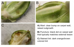 - Variety Resistance. Many varieties have very good FLS resistance; some have only moderate resistance – this may work pretty well if soybean are rotated, but don’t depend on it if soybean were grown last year (or many of the previous years). Generally, soybean are not resistant to Cercospora blight, but we have seen differences in varieties. We measure % purple seed stain in our variety tests; however, this is not always a good indicator for resistance to the leaf spot and blight.