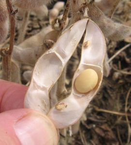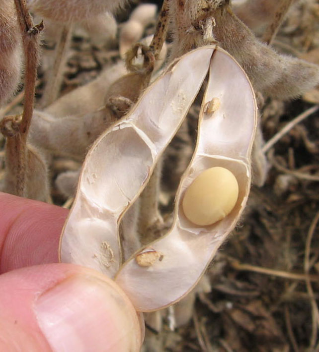 The crop has made only 50% of it’s yield at the beginning of this stage and about 75% of its yield 8 to 12 days into the stage. Only after the crop reaches physiological maturity is 95 to 100% of the yield been made. If stress such as we are having now occurs during this time, seed size will be small and some seed will abort in the pods.