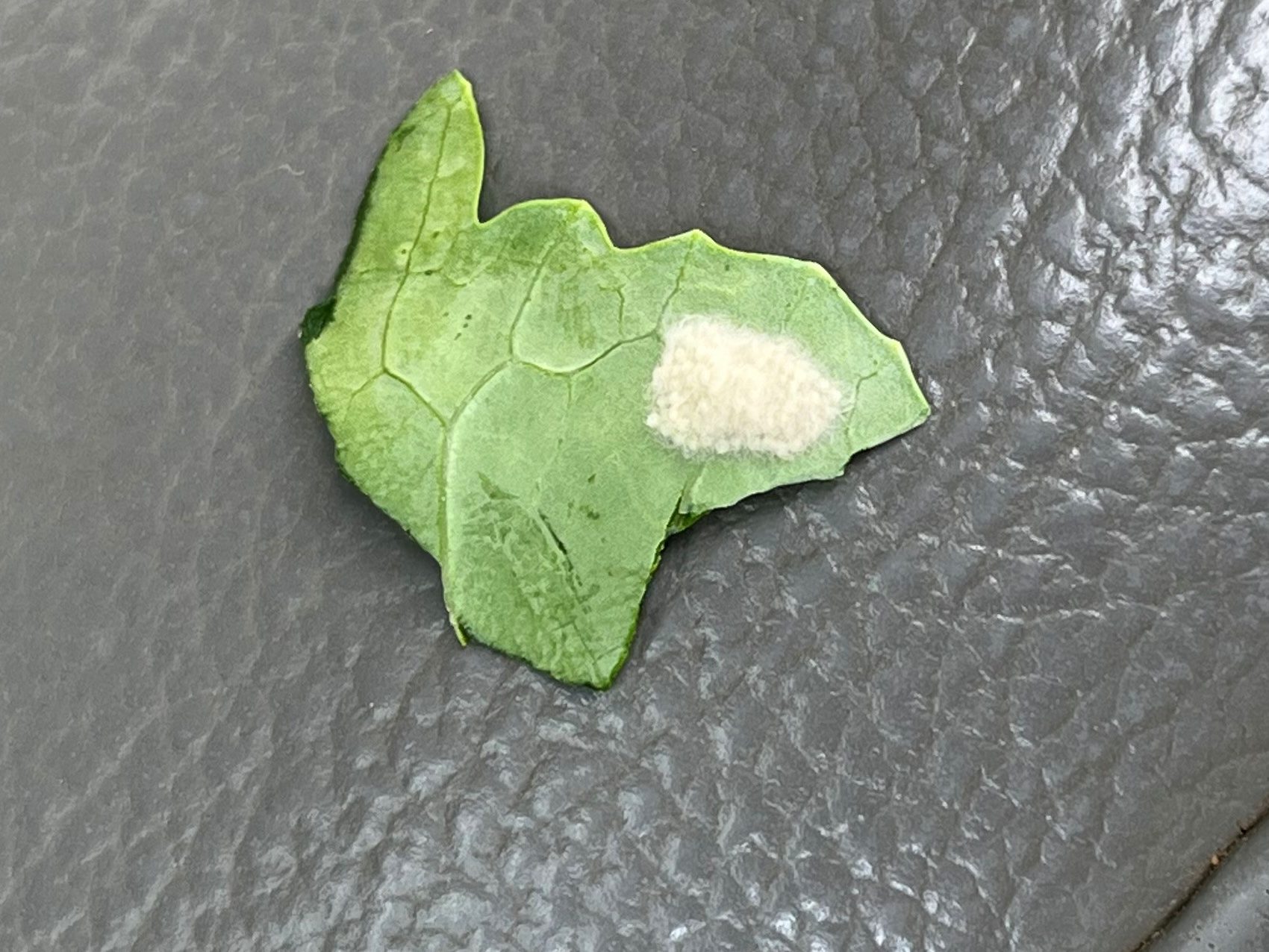 This week I visited several vegetable farms in southside (southcentral) Virginia and found beet armyworm infestations at all of the farms. This is not good news as this insect pest can be difficult to control. One field of Brussels sprouts had been sprayed with a pyrethroid and with Lannate the spray before and had a healthy population of beet armyworms doing a lot of damage (see photo). I saw mostly young larvae and even some egg masses (see photo). Based on my experience, this pest is resistant to those two classes of insecticides.