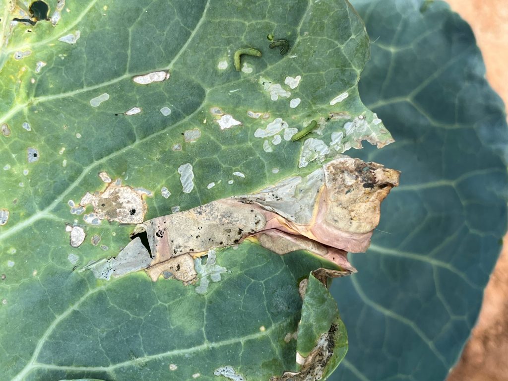 Beet armyworm on Brussels sprouts in southside Virginia. September 2022.