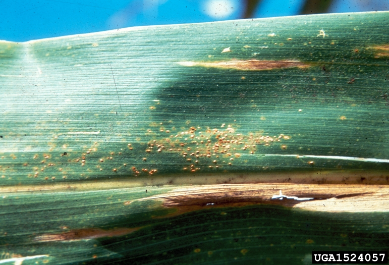 Southern rust continues to be reported on corn in Virginia. Southern rust was first confirmed August 3 on corn samples from Chesapeake and Suffolk. Since then, reports of southern rust have been made from Sussex and Albermarle counties, and it is likely that the pathogen is throughout much of the state. Yield of corn at or near the dent stage is unlikely to be impacted by the disease, but late planted corn in fields with good yield potential (120 bu/ac +) may need to be protected with a foliar fungicide. Strobilurins are good preventative fungicides whereas triazoles are recommended once sporulation is observed in a field due to their curative activity. A combination fungicide is a good option as long as a strobilurin fungicide has not been applied previously. Wet, warm weather favors disease development. Once sporulation occurs, symptoms of rust are relatively obvious. Lesions start out as raised, blister-like pustules then break open to reveal orange spores. Samples of corn plants with symptoms of southern rust can be submitted to the disease clinic at the Virginia Tech Tidewater AREC (contact Dr. Hillary Mehl, hlmehl@vt.edu).