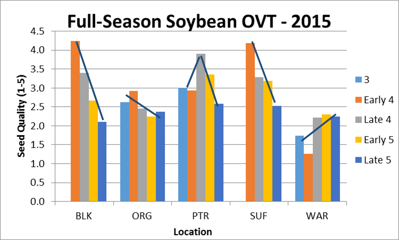 First, the maturity group 3 and early-4 soybean should be the cream of the crop this year. The yields that we are seeing is impressive and I’m hearing the same from others. These maturities appeared to avoid the drought for the most part. Plus the seed quality is very good (somewhat unusual for early-maturing varieties) due to the lack of September rain although we experienced another warmer-than-average September. This is us harvesting in Orange County last week – yields were in the 60’s and 70’s.