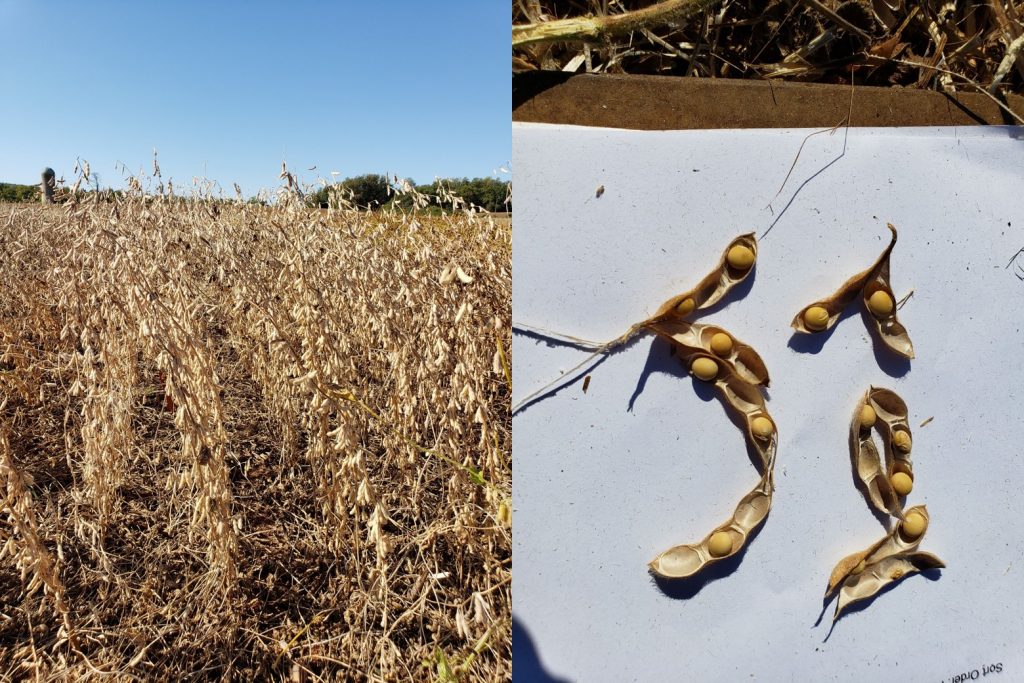 Finally a note about green stems and branches. Anytime that we have a high amount of pod and/or seed abortion we can end up with some green stems. In some cases, we’ll even have green leaves on the plant although the seed are dry. This sometimes occur with high infestations of brown marmorated stink bug along the edge of a field or with certain viruses. But, drought can also cause this.